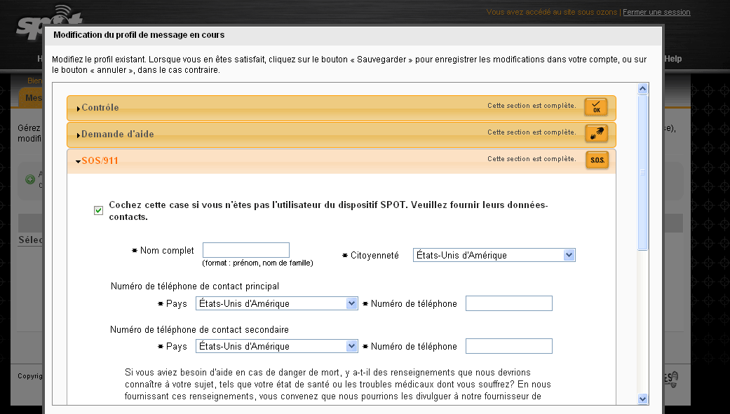 - de me fournir (à la première utilisation, sauf si changement) . Les coordonnées emails de vos contacts que vous souhaitez tenir au courant en temps réel de votre croisière, et en cas de détresse celles des correspondants privilégiés (tel). Ainsi qu'une description de votre bateau et de son équipage (et tout renseignements que vous jugeriez utile de fournir aux secours lors des recherches).