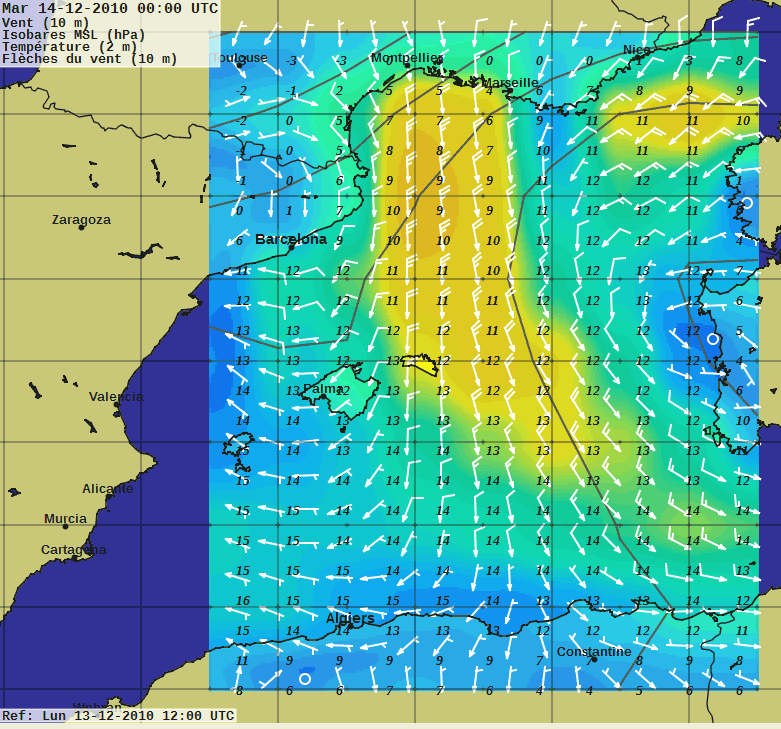 Pour le reste, en profitant d'une queue de N NW tu devrais "descendre" les doigts dans le nez. Se méfier du calme plat après le NW qui n'annonce rien de bon. Ne pas avoir peur du ridicule en utilisant "brise diesel". Toujours un oeuil sur le baro et une oreille pour Monaco Radio (VHF ou BLU). Le clapot et sec et court, mais avec 12m. tu peux étaler un peu mieux que nous. L'arrivée sur Alger est grandiose, mais l'accueil des autorités est... particulier ! Quoique...