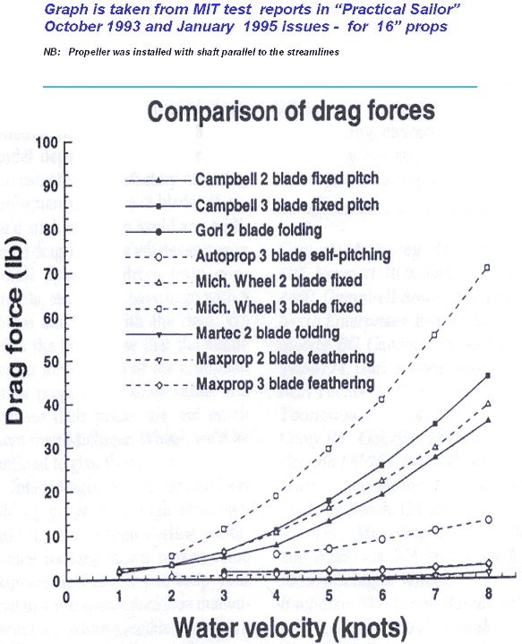 Pour moi ce graph ne parle pas d'efficacité des hélices, mais de la traîné (drag force) produites par lesdites hélices, en fonction de la vitesse du bateau sous voile.