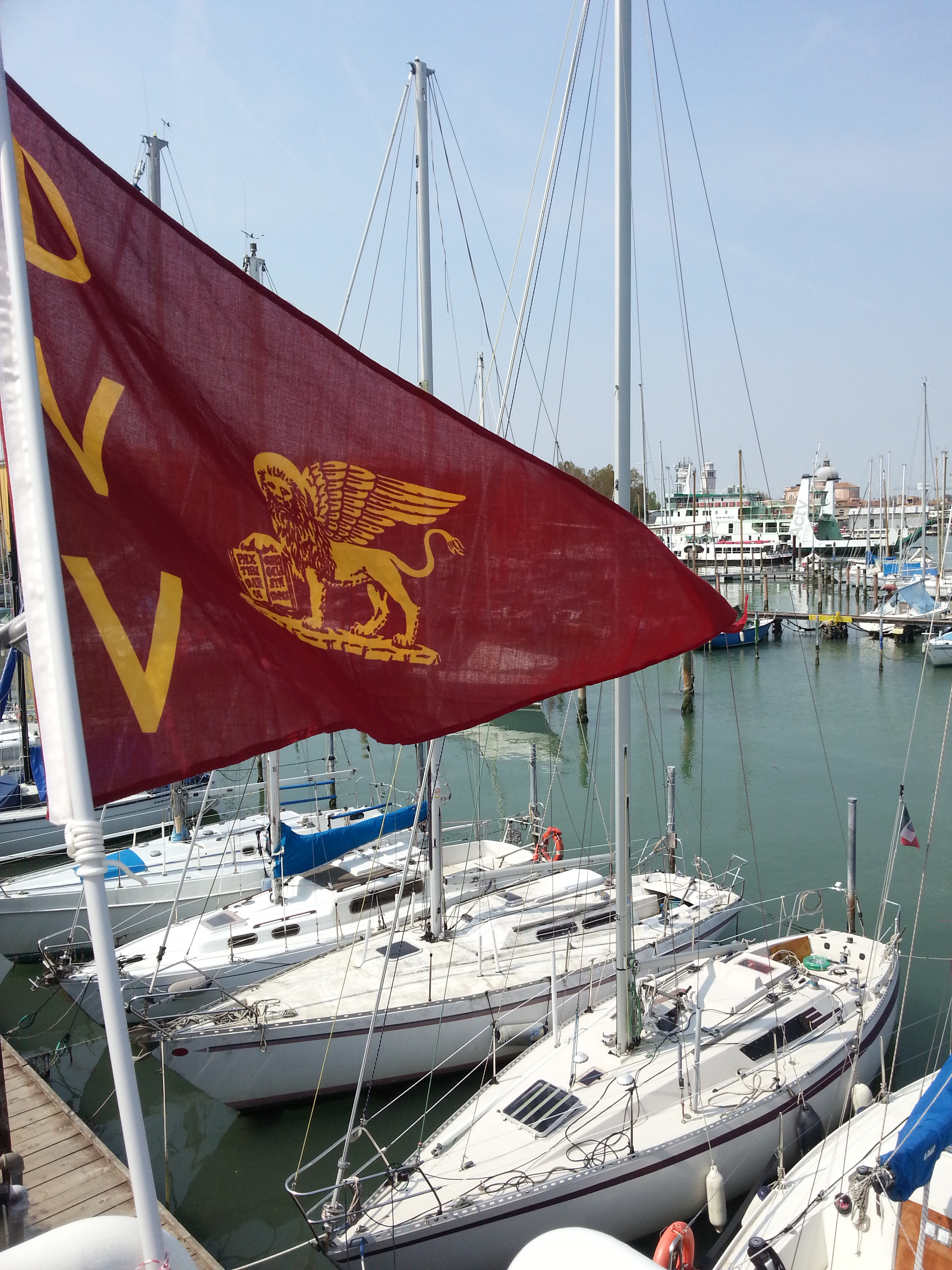(désolé par encore eu le temps de mettre : le fanion de l'assoce, du club de Venise, de Venise et de lItalie le Gwenn ha Du (OzOns est immatriculé à Vannes, j'y tiens) et le drapeau français.. pfouuu.)