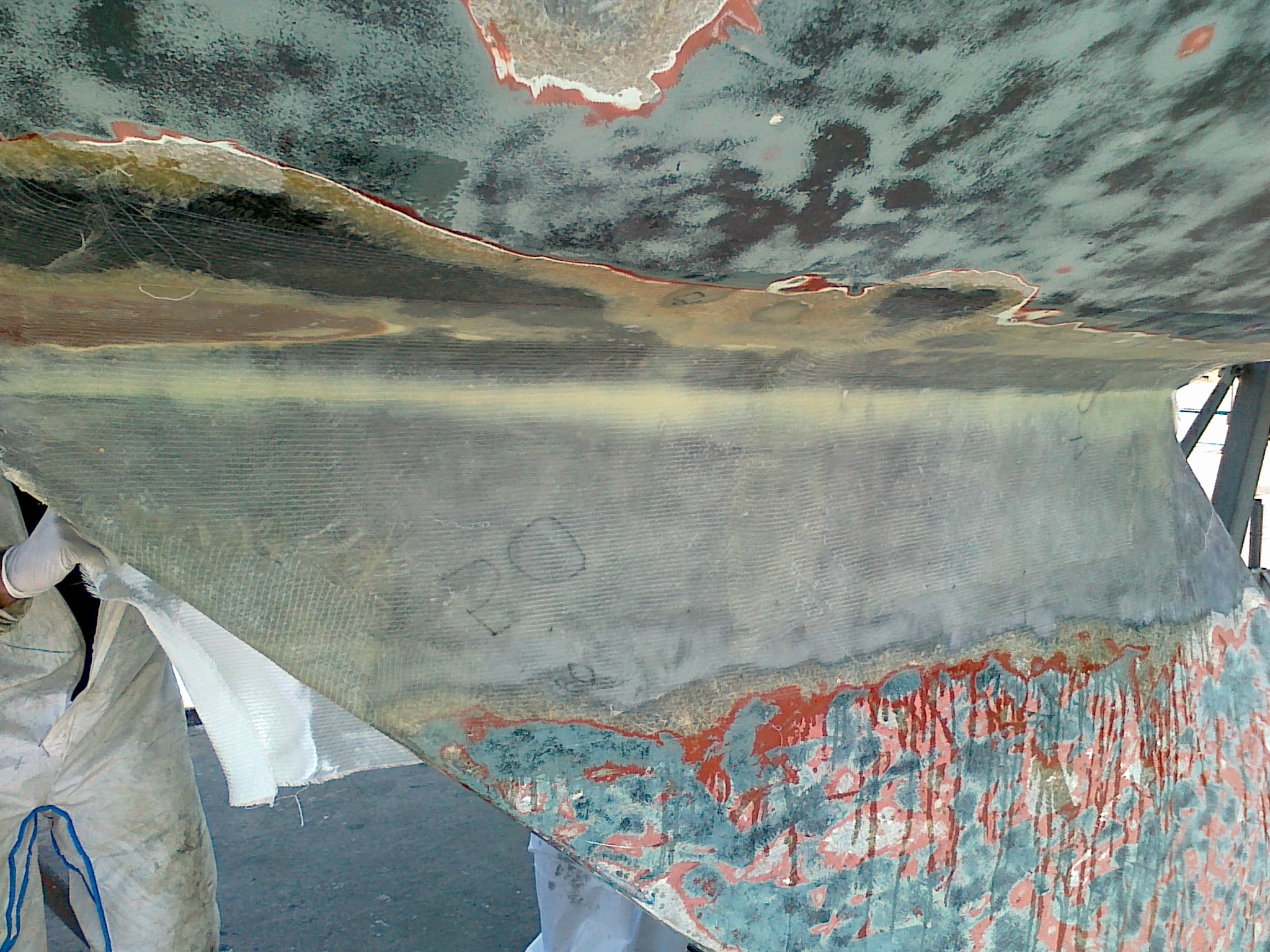 Premier carénage suite à achat 6 mois avant: on découvre une petite fissure à la jonction quille-coque: le gars qui me fait le carénage propose de meuler pour rattraper le sain et mastiquer au SIKA; mais voilà, plus il meule et