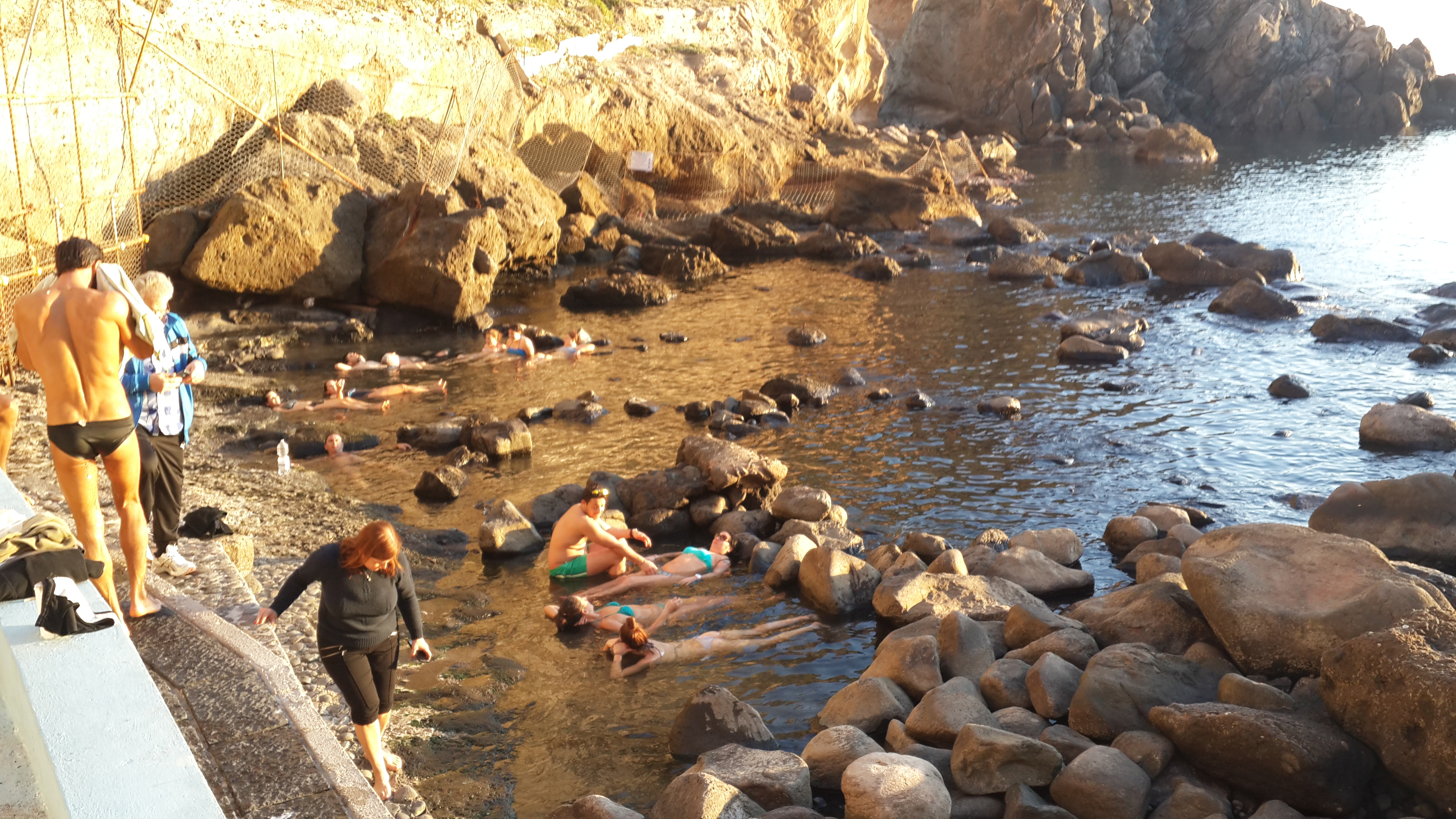 Ici Sorgeto, une source hydrothermale qui s'écoule dans la mer au pied d'une falaise invite au bain de mer hivernal, on se laisse prendre par la chaleur de l'eau sous un soleil pas aussi timide qu'on pourrait le croire, on laisse alors les heures défiler en sirotant un vin du vignoble d'Ischia perché là-haut sur les parois du volcan; en soirée, on trouve par hasard un restaurant hors des sentiers battus dans un village improbable, les tables pleines de famille italiennes, et l'on y découvre que les pates n'ont jamais été aussi bonnes.