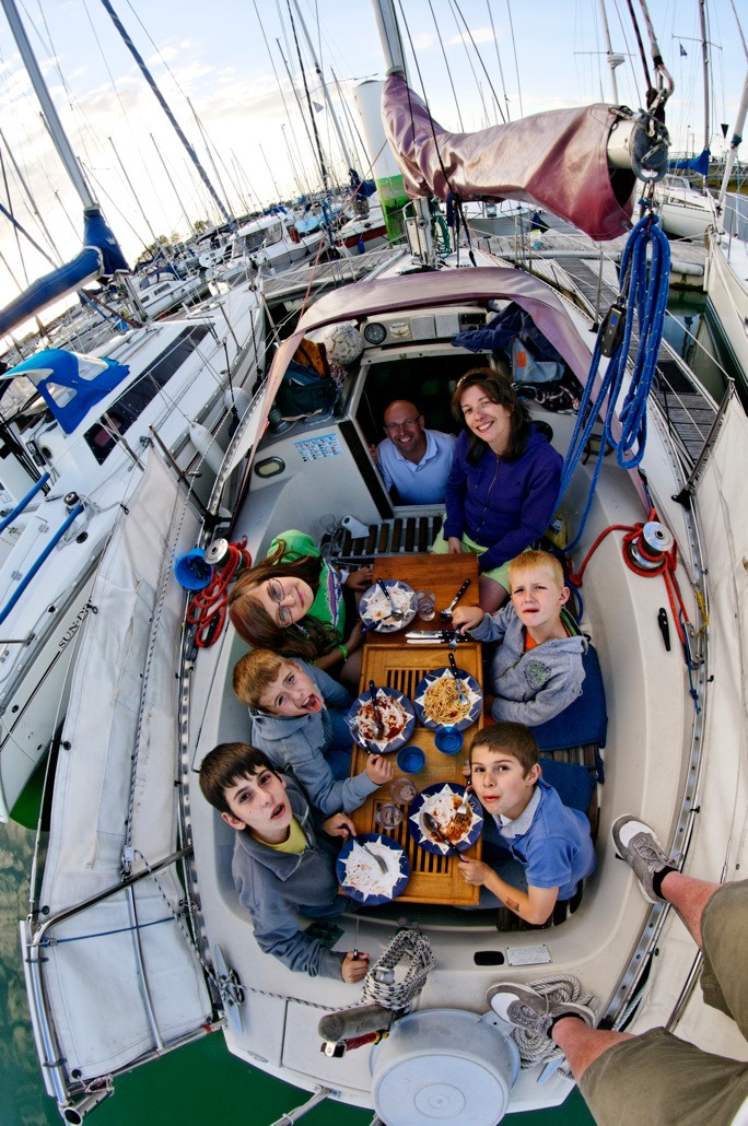 On était certes bien calés autour de la table du carré et dans le cockpit... Mais 'ça le faisait', avec un peu de coordination, sur une location d'une semaine. Même si aujourd'hui, étant deux à bord, on se demande comment...