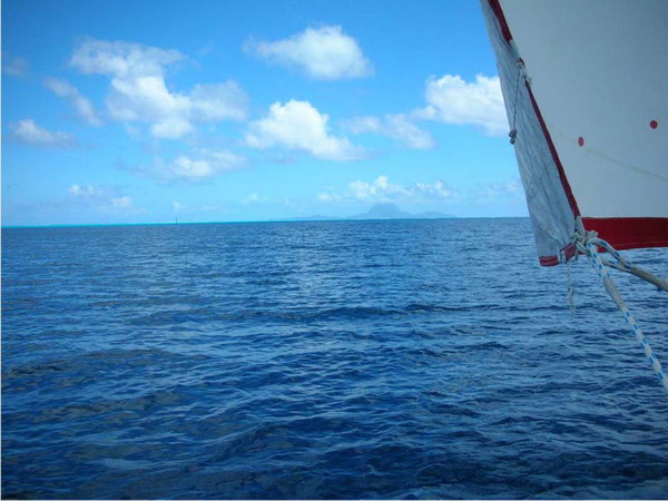 A l’approche de Tahaa, j’ai choisi de passer sous le vent, avec du force 3 au vent arrière, puis le vent est tombé par endroits sous le vent de l’île ce qui m’a permis de faire ces photos