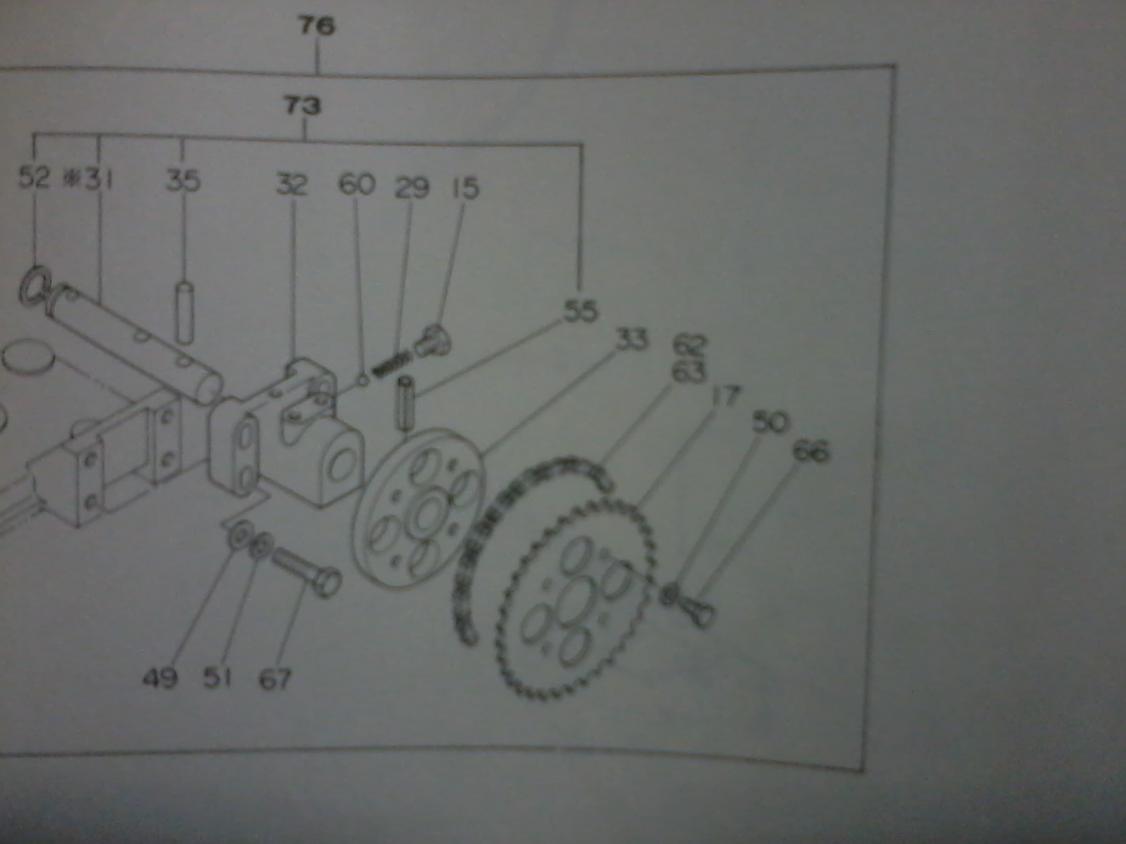 Je suis à la recherche sont les pièces indiquées sur le schéma que j'ai envoyé. En particulier: - n. 17 (qui est une couronne dentée); - 33 (qui est la bride de support de la couronne);