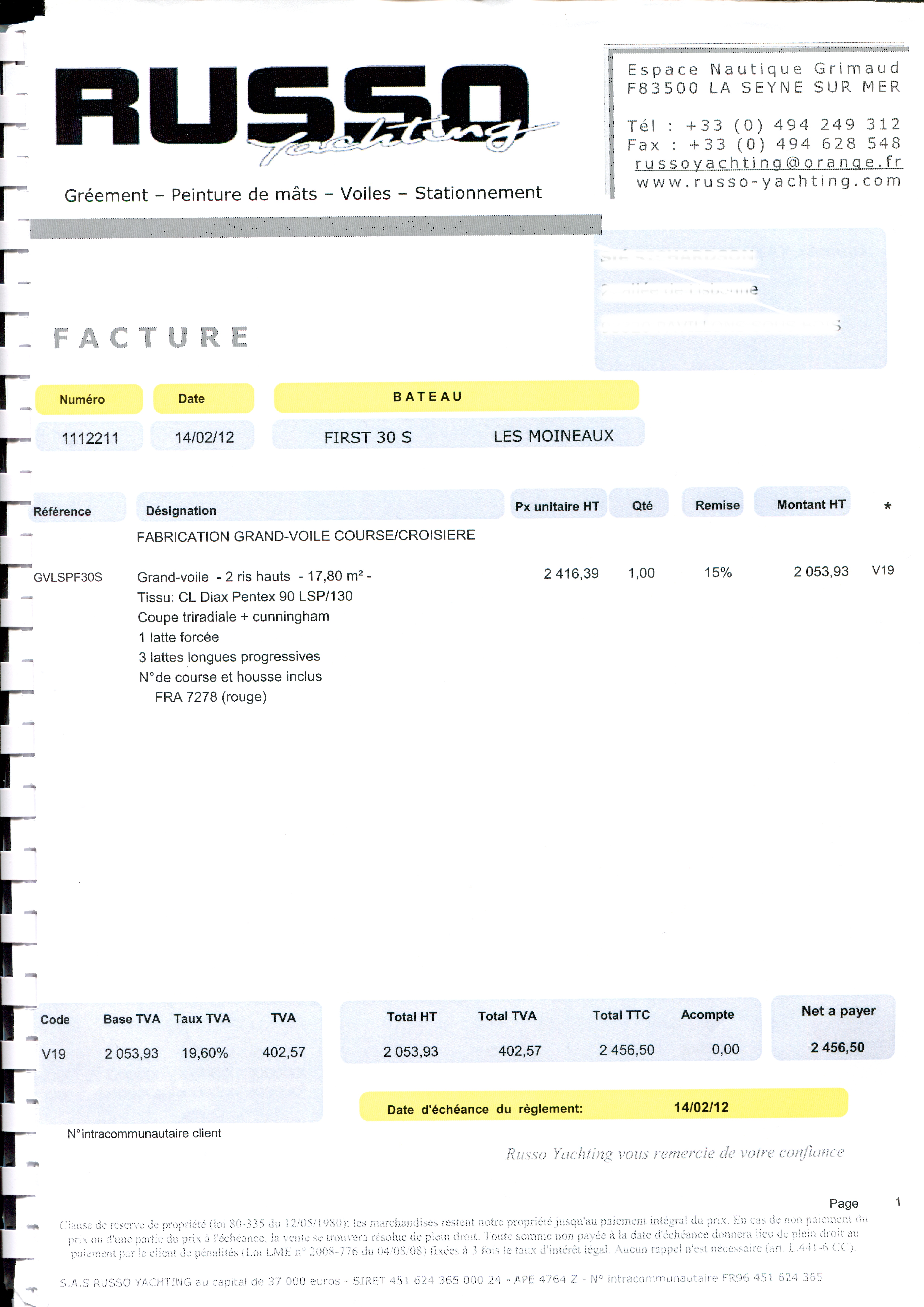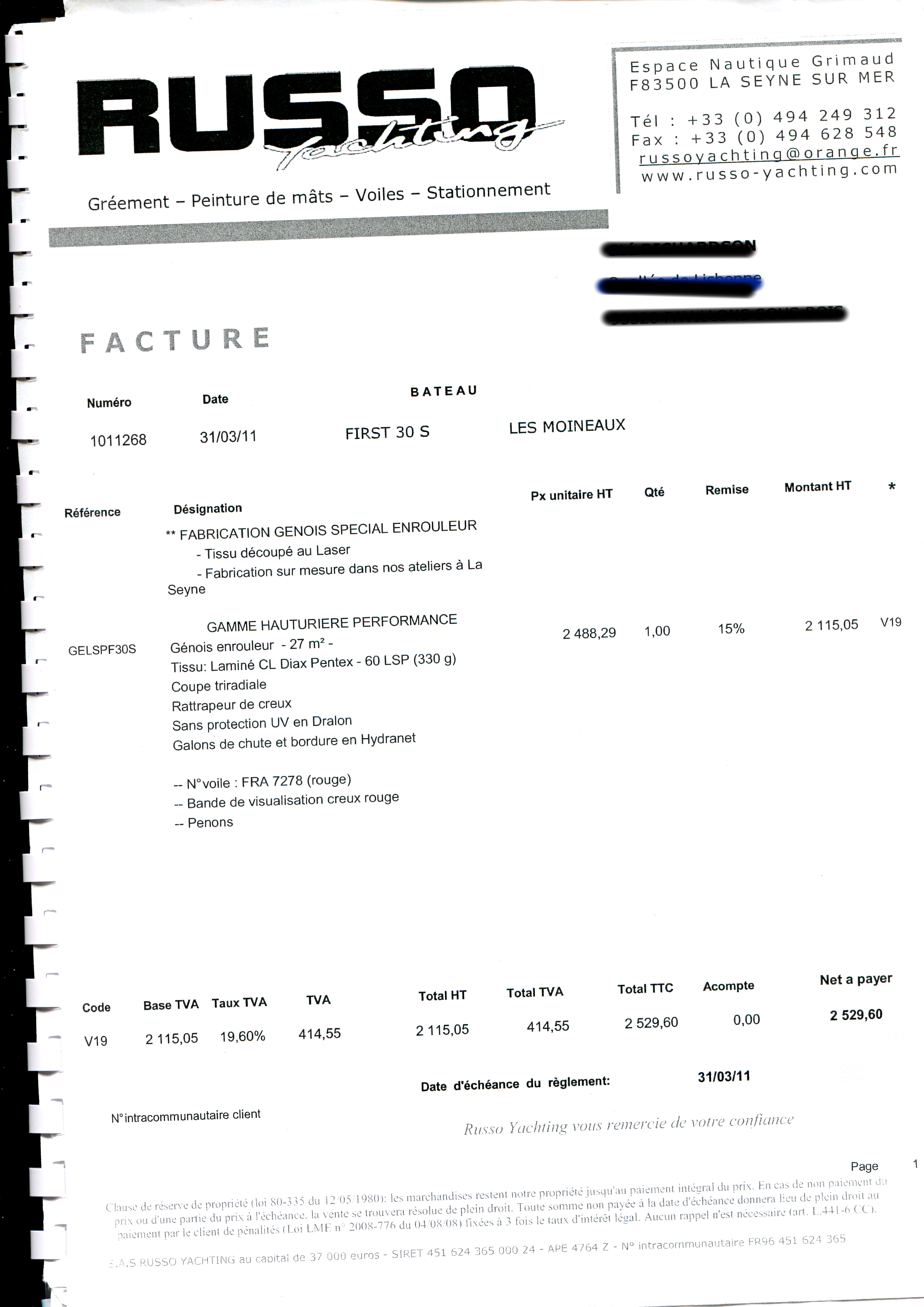 Fabricant: RUSSO VOILES Factures fournies.