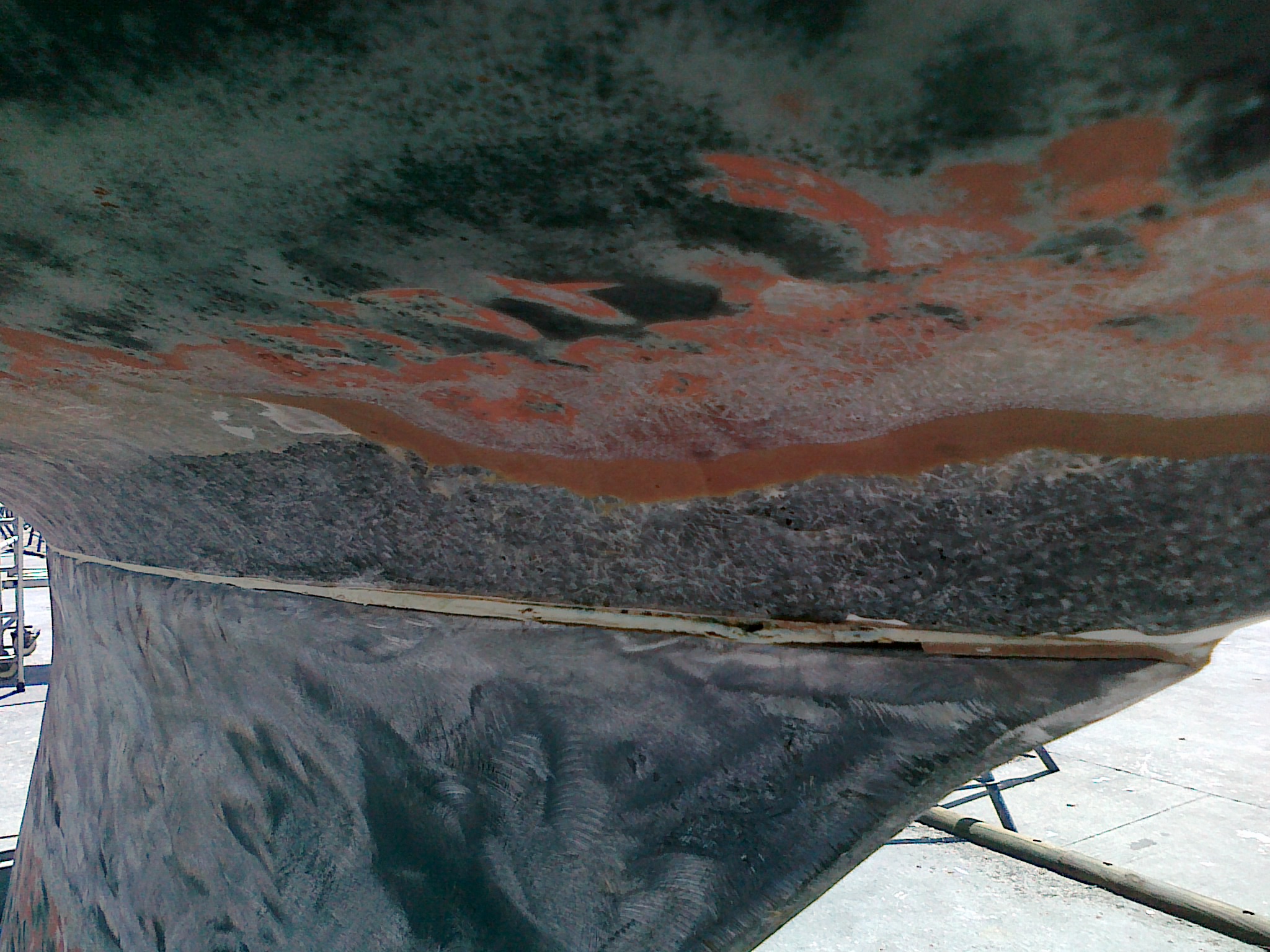 A la jonction quille-coque il y a une espece de semelle dure qui est aussi dégradée à plusieurs endroits.