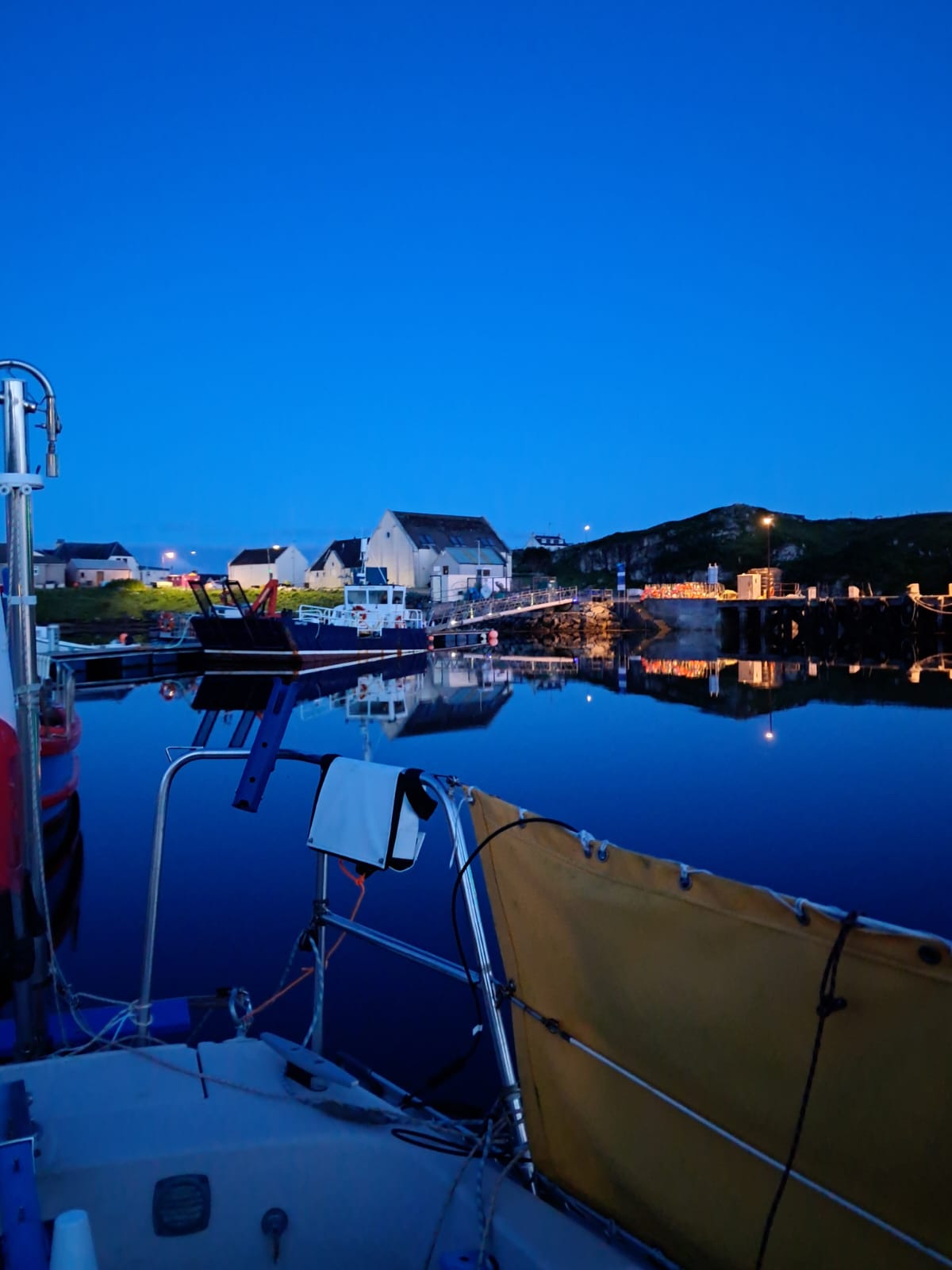 "arrivé hier soir à Torshavn. Ici il y a des bistrots sur le quai. La marina est plutôt grande. On doit tout payer par téléphone et carte bancaire. J’ai pas vu d’employés du port, je n'ai pas non-plus encore trouvé la capitainerie. Je vais rester ici jusqu'à dimanche au moins. Il y a du vent demain."