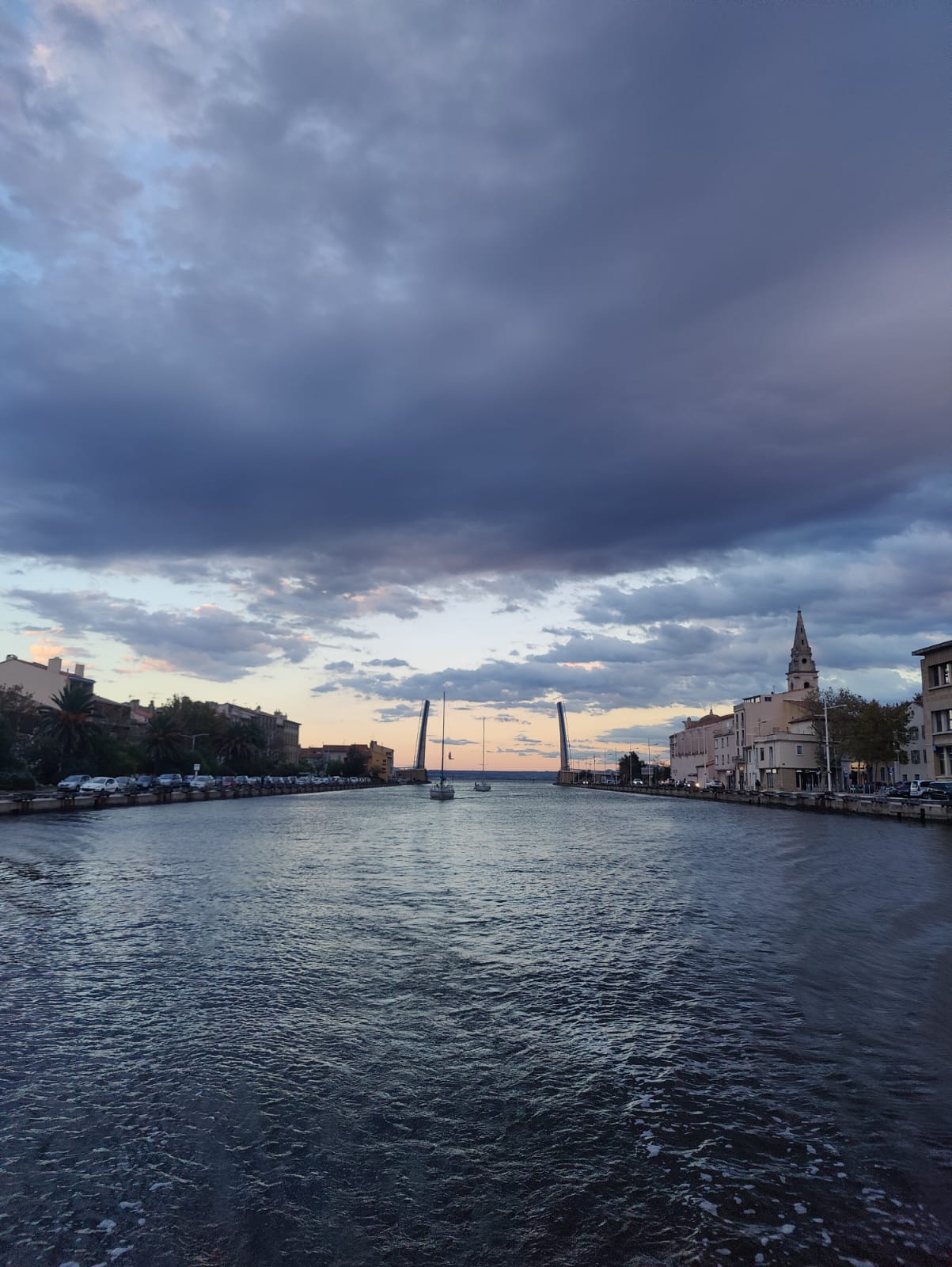 Ty Mar et Hippocampe sont partis plus tard, ont passé le pont de Martigues à 19h05, sont arrivés la nuit tombante à Port de Bouc pour prendre la mer de nuit, un vent arrière de 20-25 nds avec une houle de 2 mètres = génois seul réduit de 6 tours et sont arrivés à 23h au Frioul, à une moyenne de plus de 6 nds.