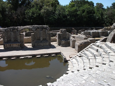 Ainsi, grâce à M.Zholi, nous avons pu nous rendre aux très belles ruines de la cité antique de Butrint (3ème siècle avant JC) en bus municipal (20 km -1€) et nous régaler à plusieurs reprises dans un succulent restaurant familial (où vous aurez du mal à dépasser les 6 €/personne pour un repas très complet, boissons comprises et salade de melons et pastèques offerts en dessert), à gauche à la sortie du port après un magasin de meubles, avec terrasse sur la baie de Corfou et où je vous conseille notamment les crevettes gratinées aux tomates et fromage.